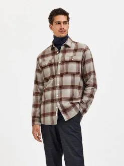 Selected Homme Geruite Overhemden Regular Fit Overhemd Heren Lichtbruin